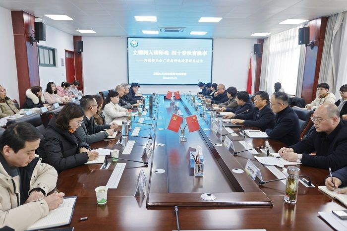 为深入贯彻落实习近平新时代中国特色社会主义思想,认真落实习近平总书记关于师德师风建设的重要讲话重要指示精神,展示教师队伍的良好形象,3月6日下午,学校举办“立德树人铸师魂  四十春秋育桃李”——师德标兵余广清老师先进事迹座谈会。校党委书记董志诚出席座谈会并讲话,校党委副书记、校长汤志主持会议。市委教育工委书记、市教育局局长齐明砾,市委宣传部副部长朱贺到会讲话;校领导于华献、徐常恺,部分学院、部门负责人、教师代表、辅导员代表和学生代表参加座谈会。