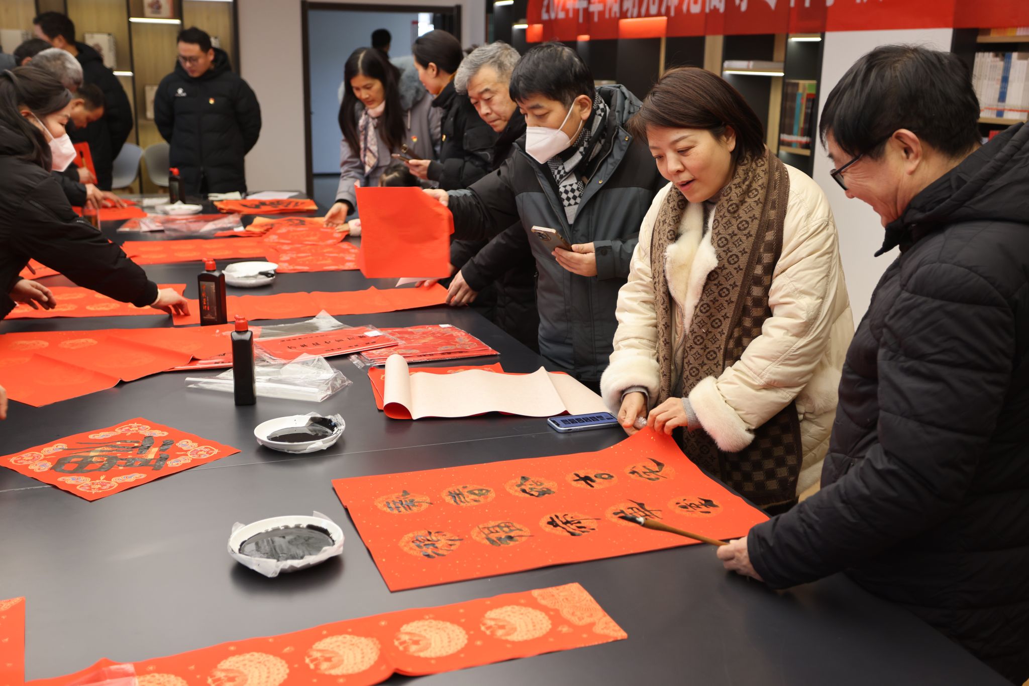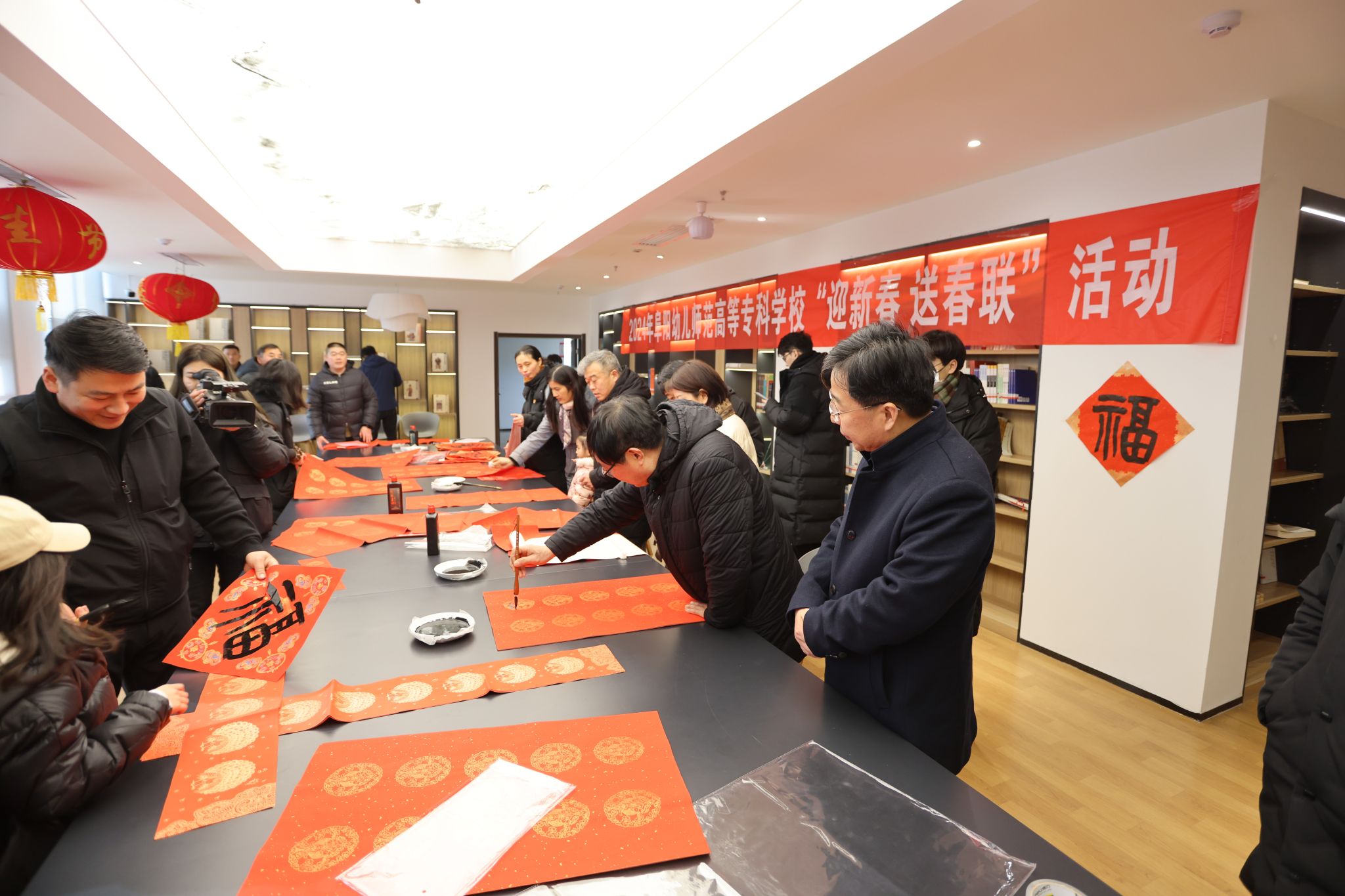 活动历时两个多小时,现场气氛温暖祥和,年味十足。书写的200多副春联和500多张“福”字赠送一空。一副副苍劲有力的春联,一句句吉祥如意的祝福,表达着广大教职员工对龙年新春的殷切期盼和对祖国国泰民安的深情祝福。(图/文:王小宝  审核:徐常恺)