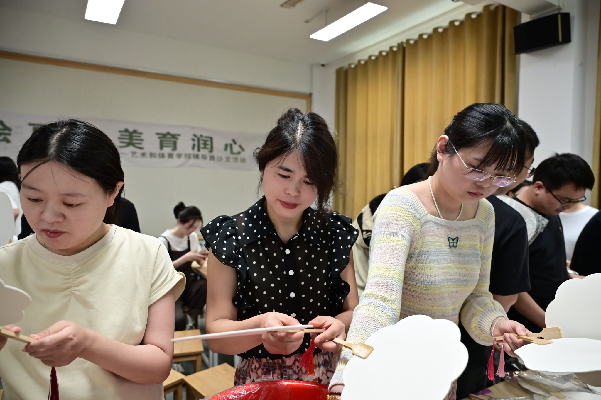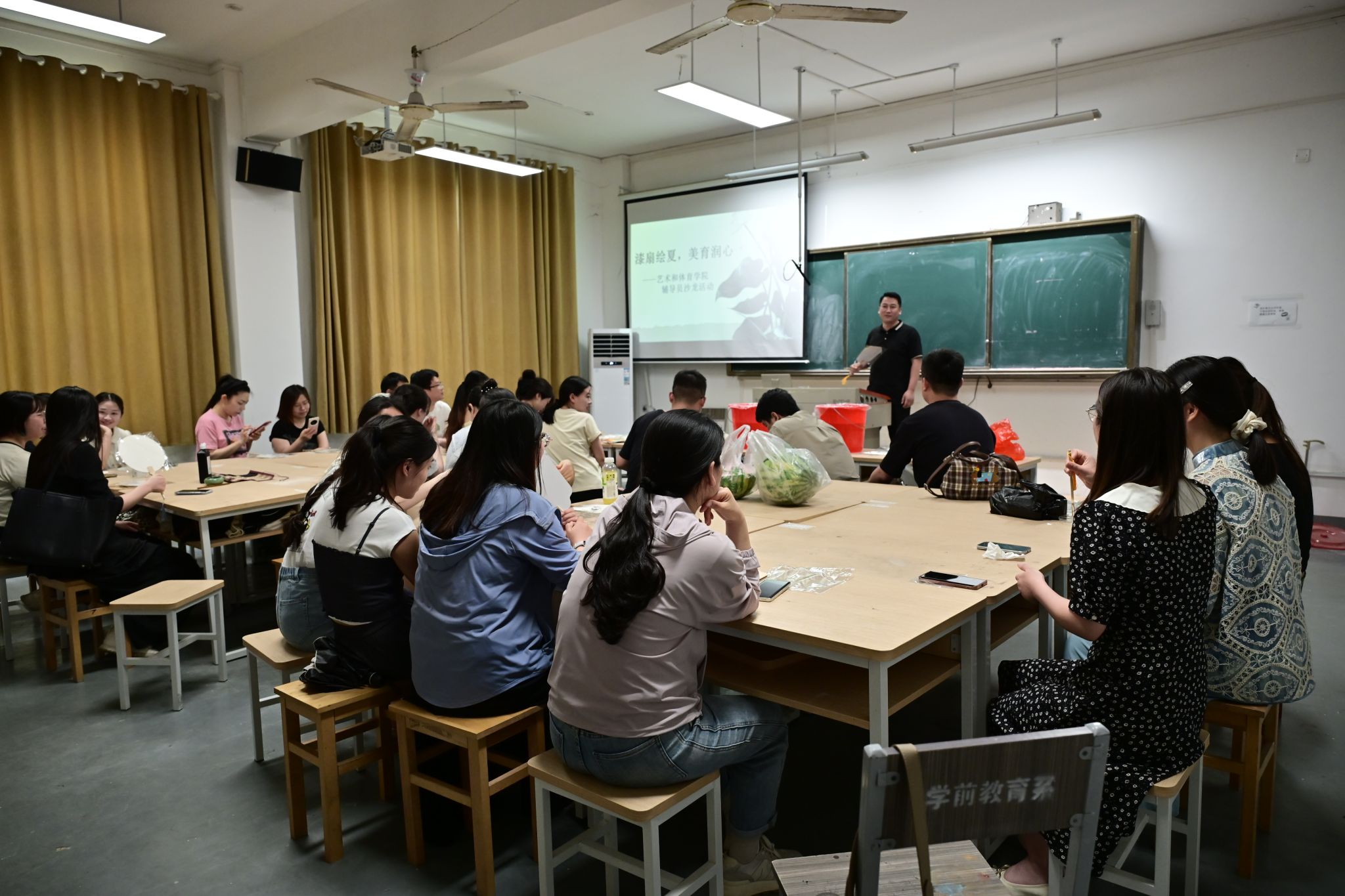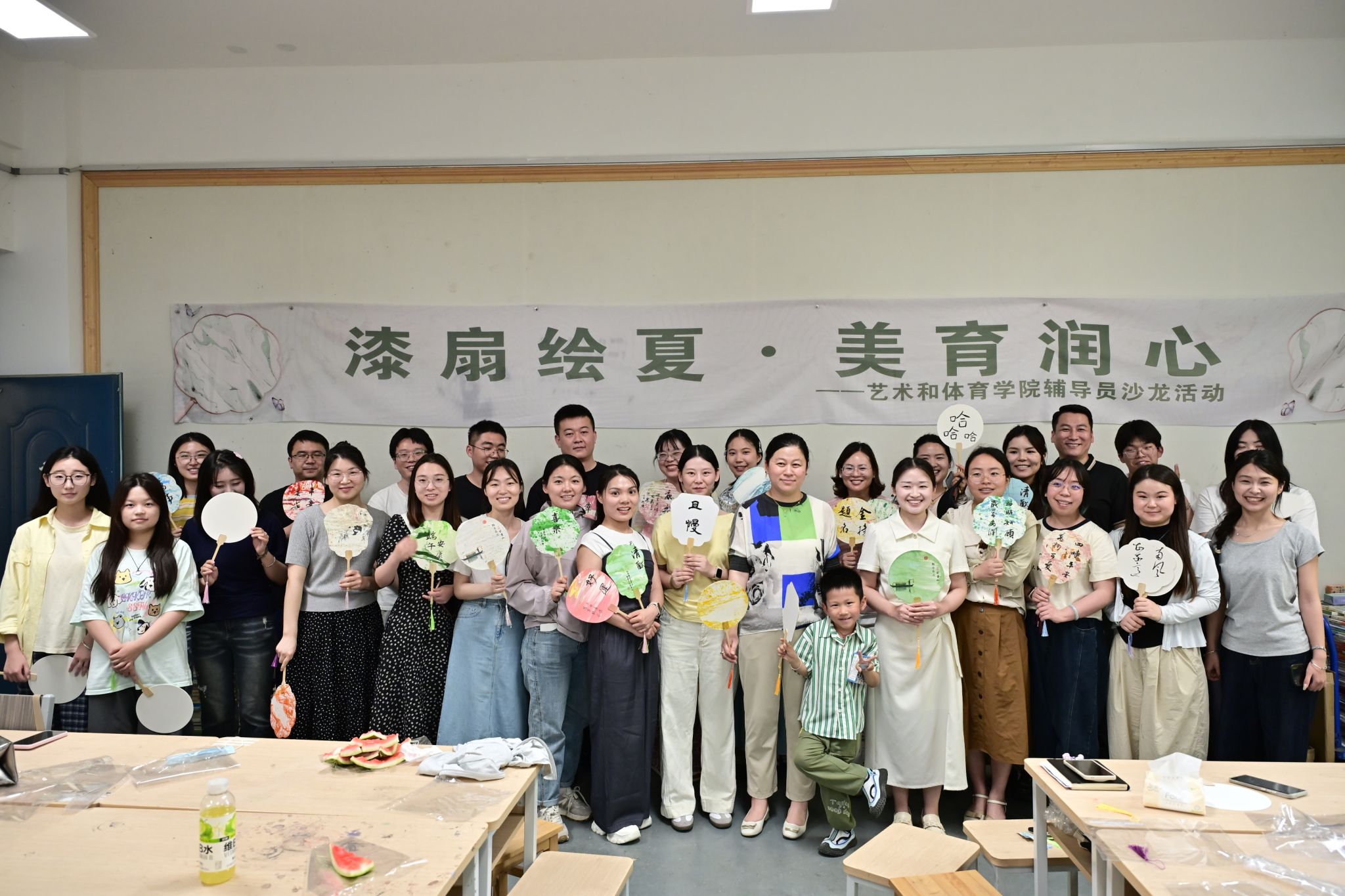 为提升辅导员队伍美育素养,探索传统文化融入思政教育的创新实践,舒缓辅导员工作压力。5月28日下午,由学生处主办,艺术和体育学院、清晨美育辅导员工作室承办的“漆扇绘夏·美育润心”辅导员主题沙龙活动在至善楼102教室举办。本次活动以 “执扇绘夏,美育同行” 为主题,吸引了来自全校各学院的60余名辅导员热情参与。