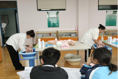 本次考核分为理论考试和实操考试两个项目,考生首先于至善楼机房进行母婴护理理论知识考试,随后在行知楼两间实训室进行了母婴护理实操考核。考试过程中,同学们精神饱满、有条不紊、操作熟练,展现出我校学生较高的职业素养和专业技能水平;监考教师严谨细致,考场秩序井然、考风端正,整个考核过程规范、严谨有序。