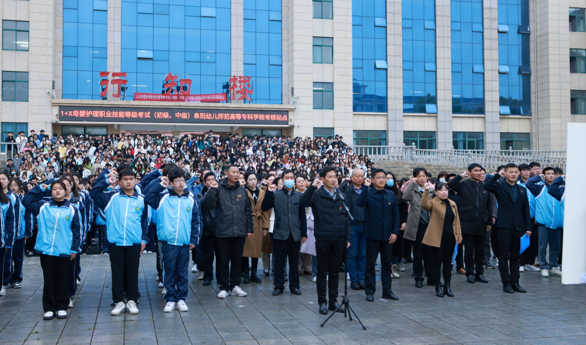 升旗仪式结束后,在鲜艳的五星红旗下,小学教育学院党总支负责人朱启俊作为领誓人,带领师生立下庄严的誓言,坚定为党育人、为国育才、严谨治学、廉洁从教的神圣使命。