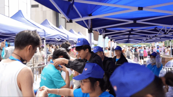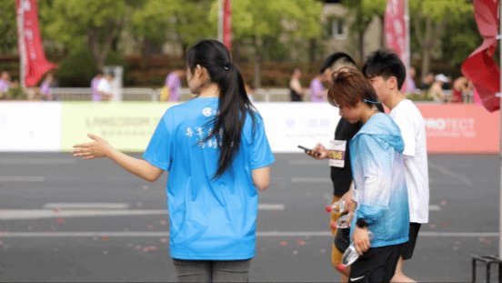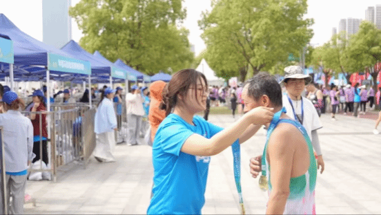 全情投入书写青春答卷 凌晨4点50分,天光未亮,志愿者在学校集合完毕,乘车前往指定服务点位。存取包志愿者仔细清点选手寄存包裹,有序码放;主舞台区域,礼仪志愿者反复练习规定动作,精准把握上台时间,微笑服务;完赛包发放志愿者为完赛选手发放奖牌和饮用水,热情点赞;拉伸小组为选手按摩拉伸,放松肌肉,帮助选手尽快恢复。志愿者们在坚守岗位,始终以认真、细致、专业的工作态度完成志愿服务活动,展示出我校学子青春靓丽的风采。