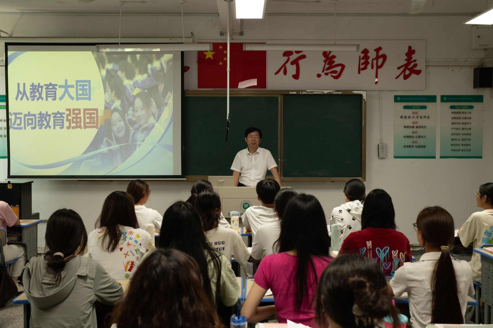 为深入学习贯彻习近平总书记对思政课建设重要指示精神,落实学校领导干部上讲台讲思政课的工作要求,6月5日上午,校党委书记董志诚深入学前教育学院,以《从教育大国迈向教育强国》为题,为2024级学前教育1班学生们讲授了一堂生动的形势与政策课。