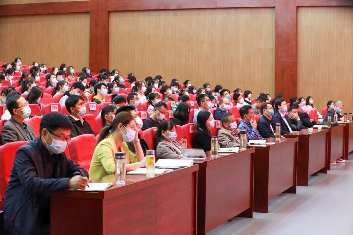 在校领导班子成员、各单位党政负责人在德馨楼演艺大厅收看开幕会直播。