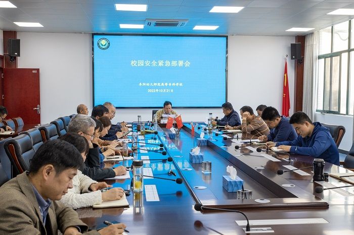 10月21日下午,我校召开校园安全紧急部署会,市人大常委会副主任、校党委书记金杰主持会议,校领导班子成员、各处室负责人、各学院党政负责人参加会议。