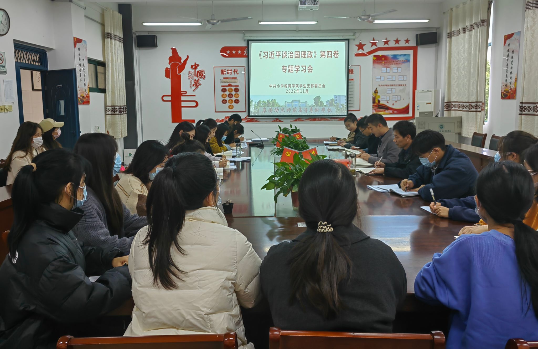 为深入学习领悟习近平新时代中国特色社会主义思想,不断提高党员师生的理论素养和思想觉悟,1116日,小学教育学院学生党支部在文津楼201,召开《习近平谈治国理政》第四卷专题学习会。支部党员、预备党员、入党积极分子参会,会议由支部书记刘磊主持,学院党总支负责人朱启俊作总结发言。