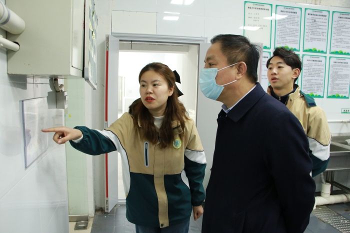 在学校附属幼儿园,金杰走进食堂操作间,了解了幼儿一周菜谱安排情况,查验采购的食材原料。金杰要求持续增强食品安全意识,规范操作流程,严格把控食堂食材质量关,强化家长委员会监督作用,科学调配幼儿饮食,均衡膳食营养,确保食堂安全工作万无一失。(图文:韩笑 审核:刘志伟)