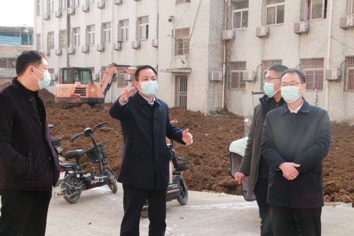 在三食堂施工现场,金杰详细了解了施工进度安排及施工人员疫情防控情况,要求加强安全意识,规范施工,在保证质量的前提下,利用学生离校后时间,加快施工进度,确保三食堂按期投入使用。