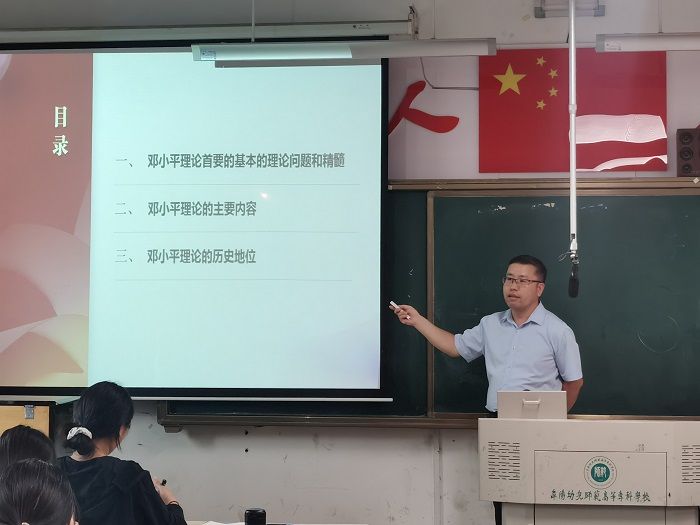 活动中,吴奇一行走进思政课堂,听取了李支援老师主讲的《毛泽东思想和中国特色社会主义理论体系概论》课程。李支援以“中国特色社会主义理论体系的形成与发展”为主线,结合历史背景、现实案例和视频资料,生动阐释了邓小平理论的核心要义、历史贡献及时代价值。课堂上,通过互动问答、小组讨论等形式,引导学生深入思考改革开放的历史意义和当代启示,课堂氛围活跃,学生参与积极。